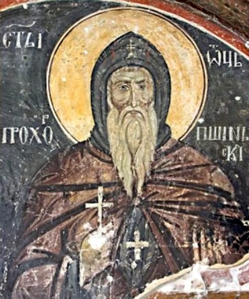 Преподобни Прохор Пчињски Прохор је рођен у првој половини XI века од побожних родитеља, Јована и Ане, у околини Овчег поља. По Житију, Прохор је рано изучио књижне мудрости и у свему био бољи од својих вршњака. У духовном усхићењу он одлази у пештеру Нагоричинску (источно од Куманова), близу данашњег манастира Старо Нагоричино, где среће ловца Диогена. Прохор му прорече да ће постати цар и рече му: сети се и мене кад постанеш цар. То се и обистинило – Диоген поста византијски владар Роман IV Диоген (1067-1071). Житије даље казује да се пустиножитељ Прохор подвизавао тридесет година у планини Козјак (јужно од Врања), у једној малој пећини. Ту се и престави после шездесет и две године испосничког живота. После тридесет година преподобни Прохор се у сну јави цару Диогену и опомену га речима: „Зашто, Диогене, заборави своје пређашње хаљине и мене старца? Постарај се да ми подигнеш макар мали храм“. Цара обузе страх и са патријархом и пратњом пође у Жеглиговски крај у Нагоричино да тражи старца Прохора. Пошто га ту не нађе, пређе у планину Козјак. После много дана тражења пронађоше пећину и у њој мошти преподобног Прохора. На том месту цар подиже цркву у славу Светога Луке, а десно од реке Пчиње сагради храм посвећен преподобном Прохору. У томе храму, са десне стране олтара, положише свете мошти Преподобнога; из њих потече свето миро. Део моштију цар је однео у Цариград, један део доспео је доцније у Љубостињу, а остали део и данас се налази у манастиру преподобног Прохора Пчињског под планином Козјак. О преподобном Прохору Пчињском, чије мошти и данас почивају у његовом манастиру и точе миро, сачувана су многа писана сведочанства, посебно о његовим чудотворним моштима. Српска црква овога свеца слави 1. новембра (односно 19. октобра по старом календару).