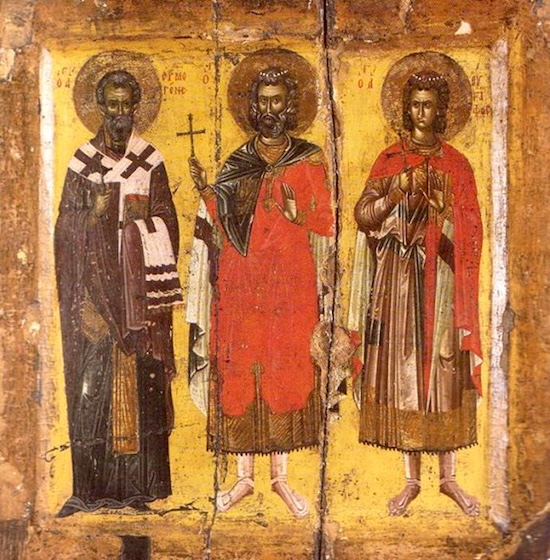Свети мученици Мина, Ермоген и Евграф Мина и Ермоген беху Атињани родом. Обојица су живела у Цариграду у великој части и код цара и код народа. Мина беше познат због велике учености и красноречивости, и споља држаше се као незнабожац, у срцу, пак, беше убеђени хришћанин. Ермоген беше епарх цариградски, и држаше се незнабоштва споља и изнутра, премда беше милосрдан и чињаше многа добра дела. Када букну нека распра између хришћана и незнабожаца у Александрији, цар Максимин посла Мину, да утиша метеж и да хришћанство истреби из тога града. Мина оде и успостави мир, но објави себе хришћанином, и обрати многе незнабошце у веру праву речитошћу и чудесима многим. Чувши за ово, цар посла Ермогена, да Мину казни и хришћанство угуши. Ермоген изведе Мину на суд, одсече му стопала и језик, и избоде очи, па га онда баци у тамницу. У тамници Мини се јави сам Господ Исус, исцели и утеши Свога страдалца. Видевши Мину, чудесно исцељена, Ермоген се крсти и поче проповедати силну веру Христову. И би Ермоген постављен за епископа у Александрији. Тада разјарени Максимин сам оде у Александрију и стави Мину и Ермогена на велике муке, које они храбро издржаше, помагани благодаћу Божјом. Видећи храброст ових Христових војника и чудеса Божја на њима, јави се пред судилиштем Евграф, тајник и пријатељ светог Мине, и викну цару у лице; „И ја сам хришћанин!“ Цар се збеси, трже мач и посече светог Евграфа. Потом нареди нечестиви цар, те џелати мачем посекоше свете Мину и Ермогена. Њихове свете мошти, бачене су у море, чудесним начином допловише у Цариград, где их епископ, коме се у сну о томе јави, свечано дочека и чесно сахрани.Преподобна Ангелина и свети Јован деспот